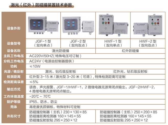 激光(紅外)防碰撞裝置技術(shù)參數(shù) 瀏覽:1412